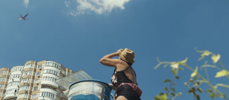 On the outskirts of Kyiv, a woman in her 70s demonstrates her love of freedom.